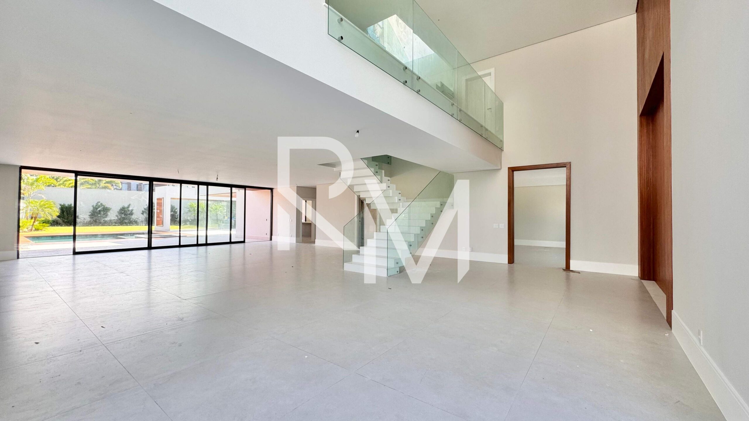 Logo na chegada, o hall de entrada dá acesso a um amplo living integrado, distribuído em diversos ambientes e valorizado por um charmoso pé-direito duplo, que proporciona luminosidade natural e uma sensação única de amplitude. Ainda neste pavimento, a casa conta com lavabo e uma confortável suíte de apoio com closet, versátil o suficiente para funcionar como escritório ou home theater. A copa-cozinha, com ilha central, foi planejada para unir praticidade e convivência, além de contar com despensa e banheiro de apoio para funcionários.