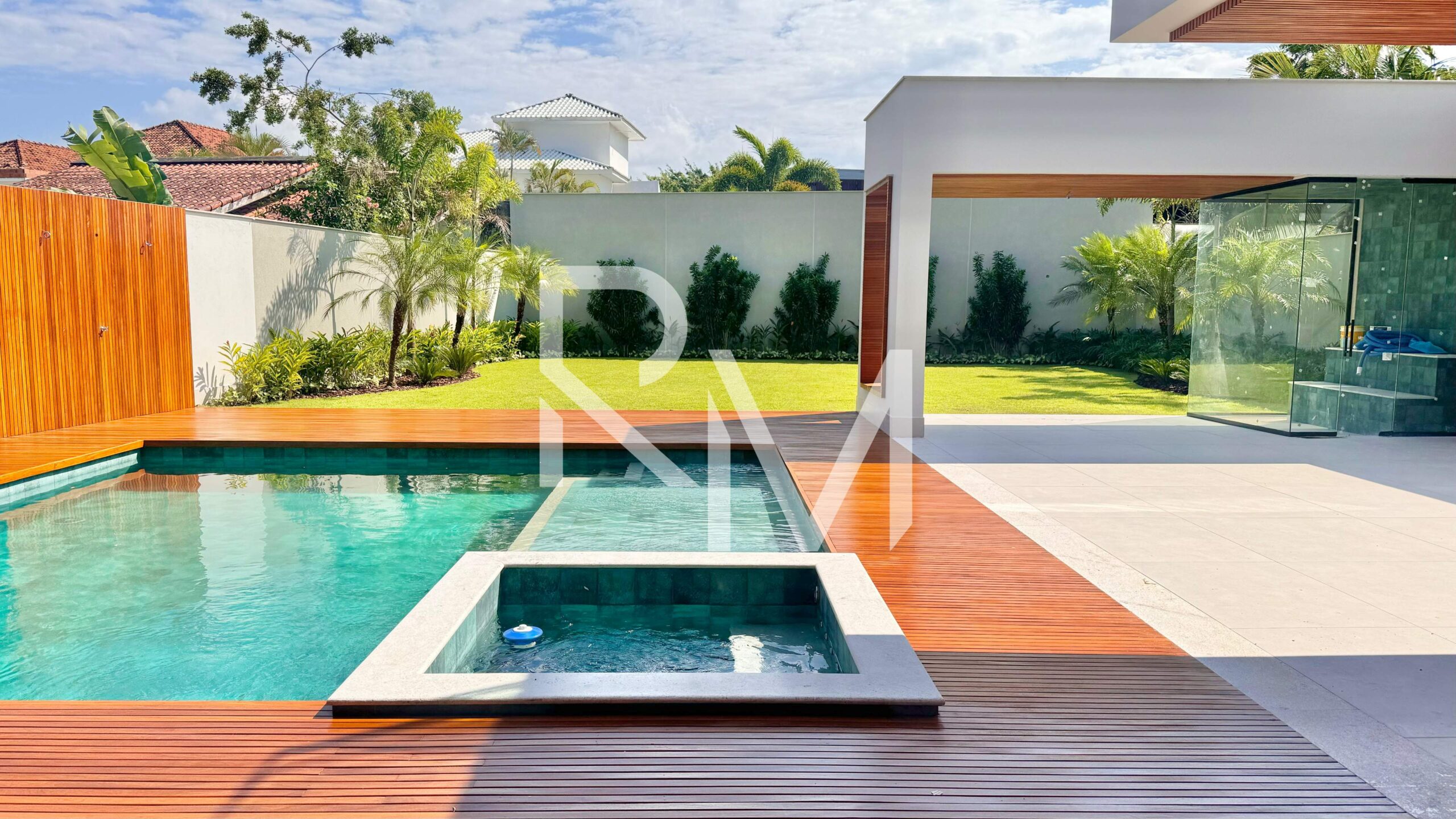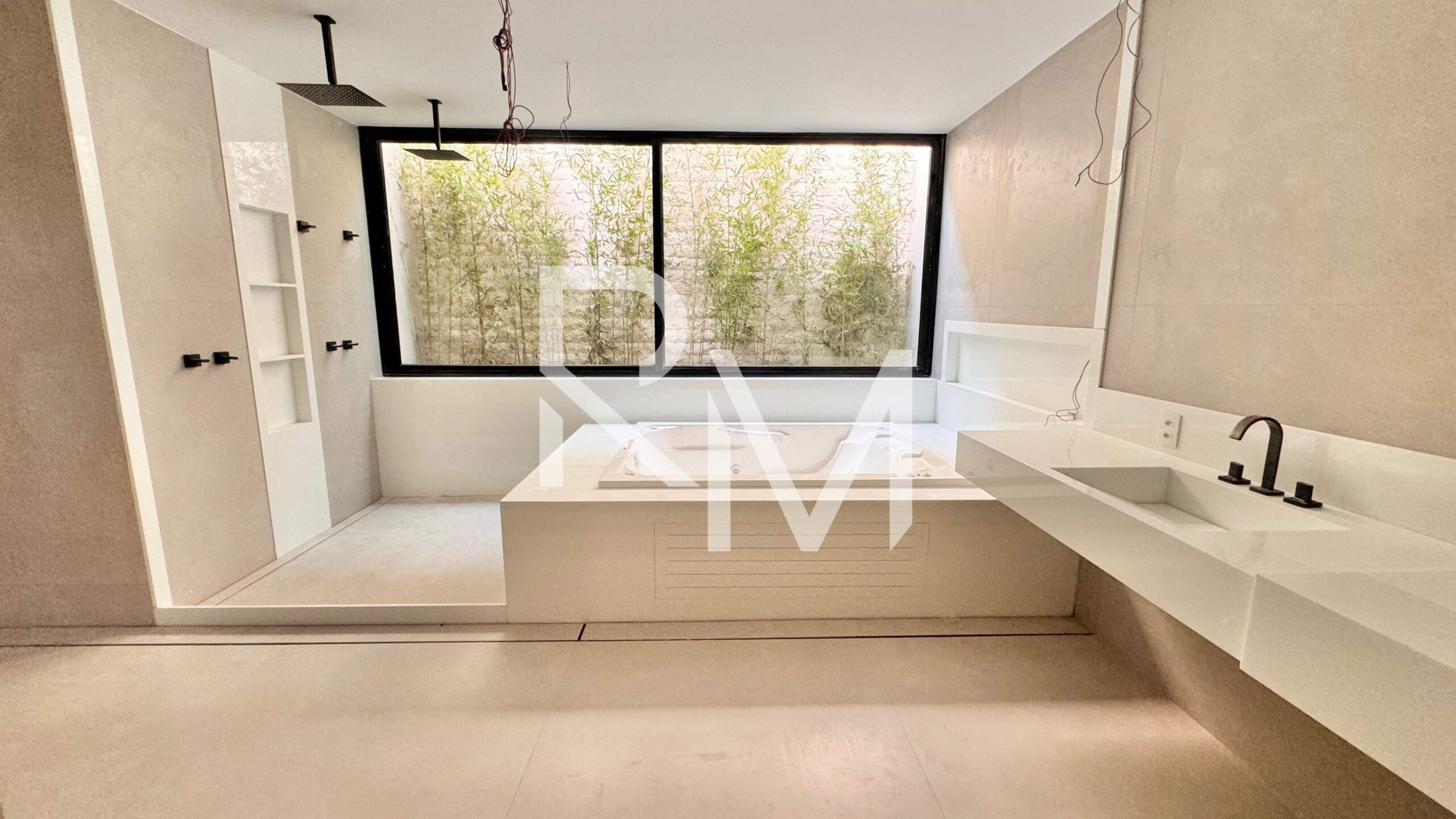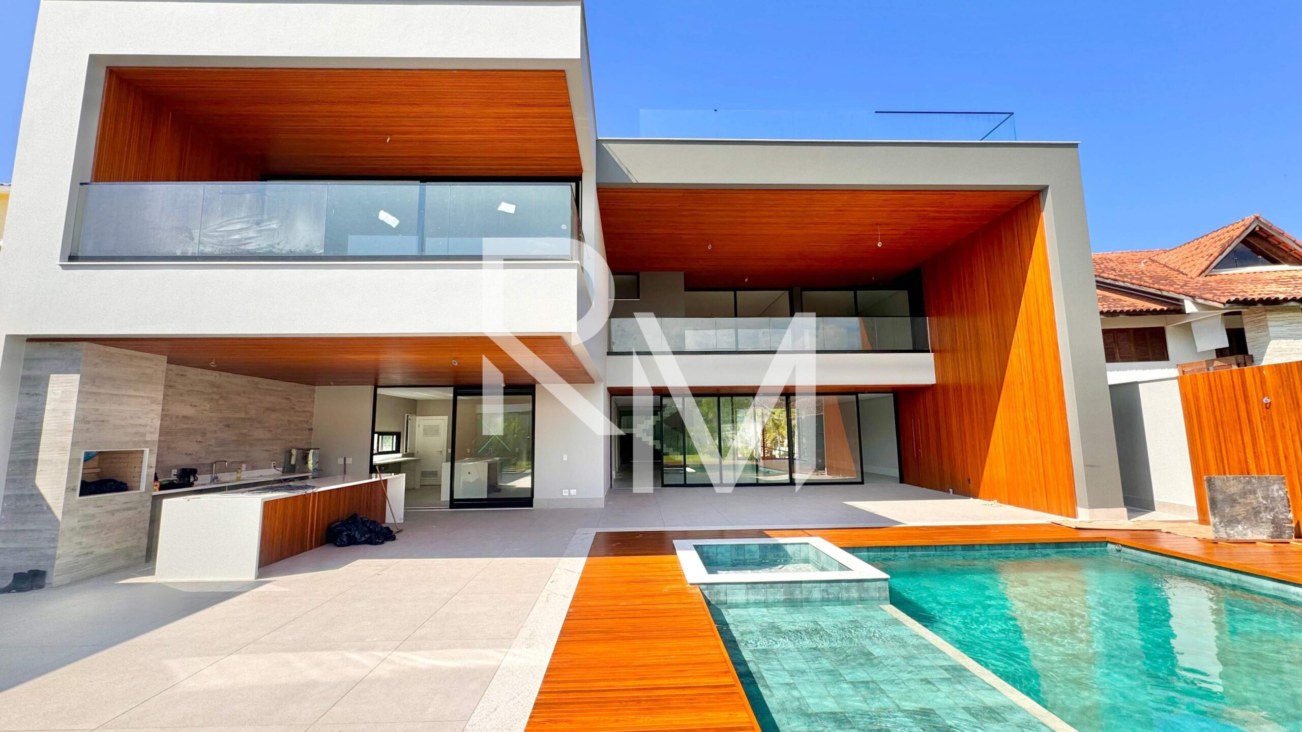 No segundo pavimento, um hall de circulação conduz às quatro suítes, todas com closet e varanda, garantindo privacidade e conforto aos moradores. O grande destaque fica por conta da suíte master, um verdadeiro refúgio particular, com generoso closet, varanda voltada para a área de lazer e um impressionante salão de banho, equipado com duas duchas, bancada com cuba dupla, banheira de hidromassagem e um agradável jardim de inverno.