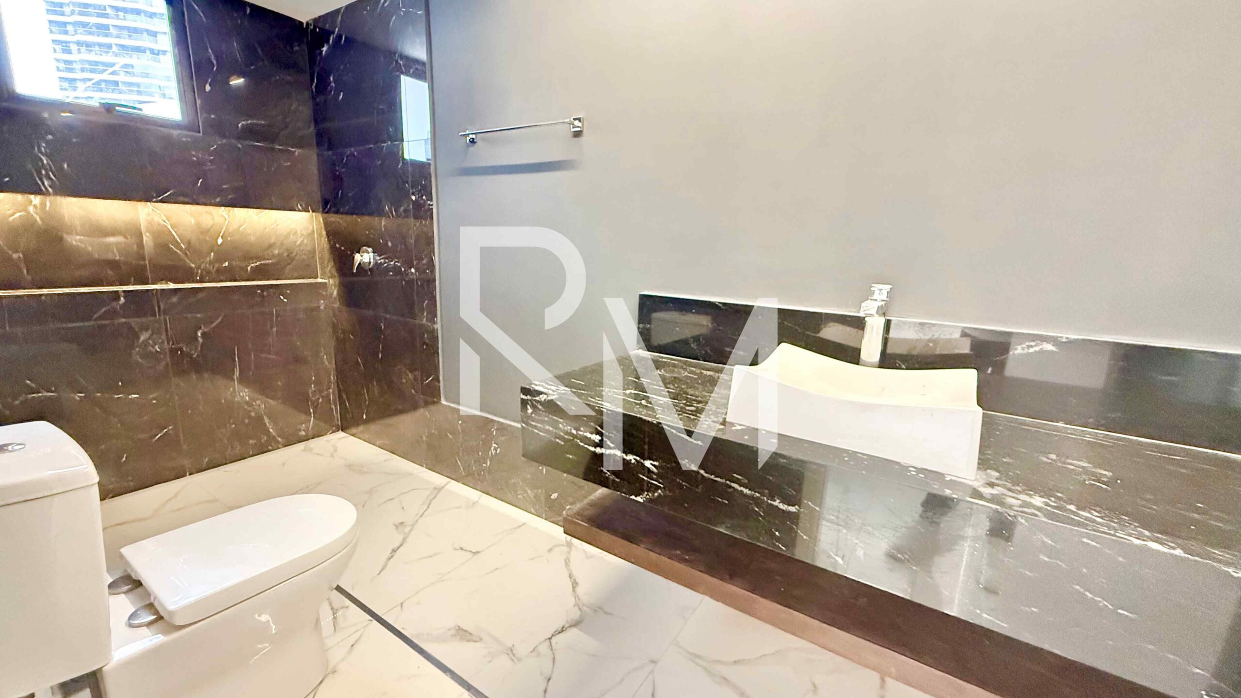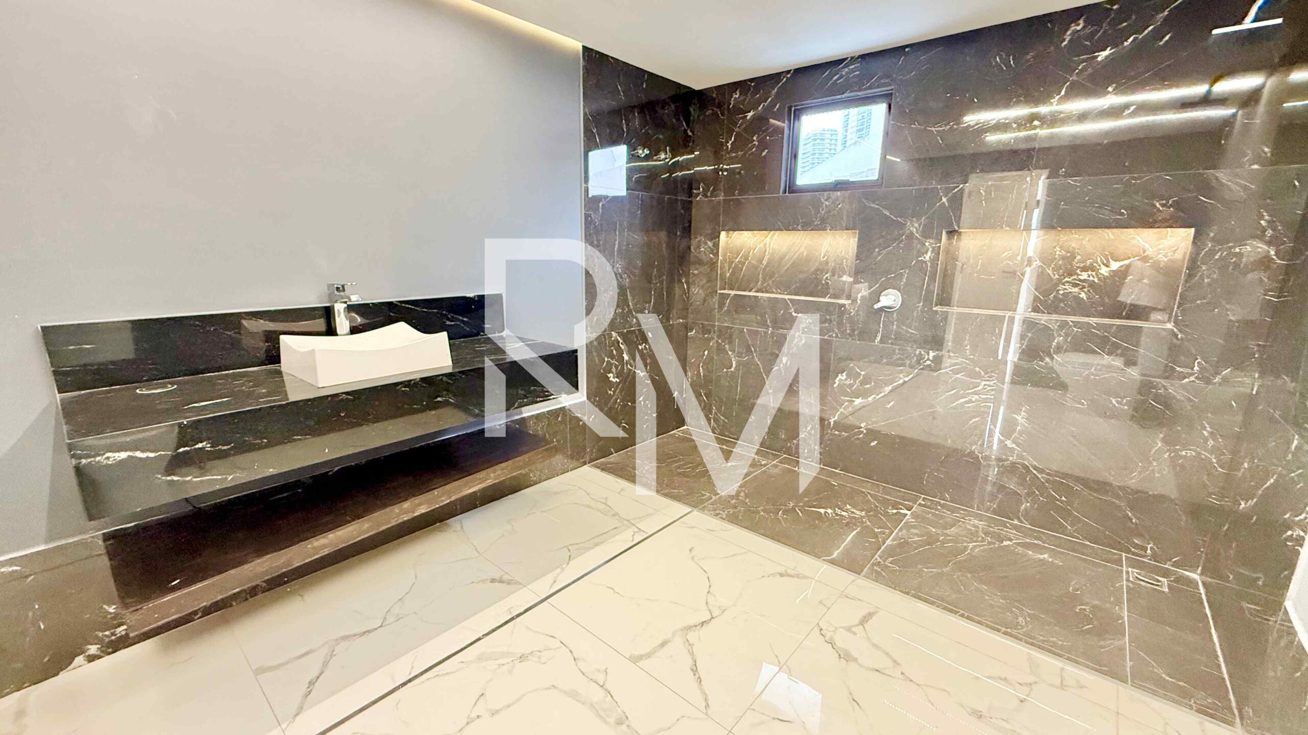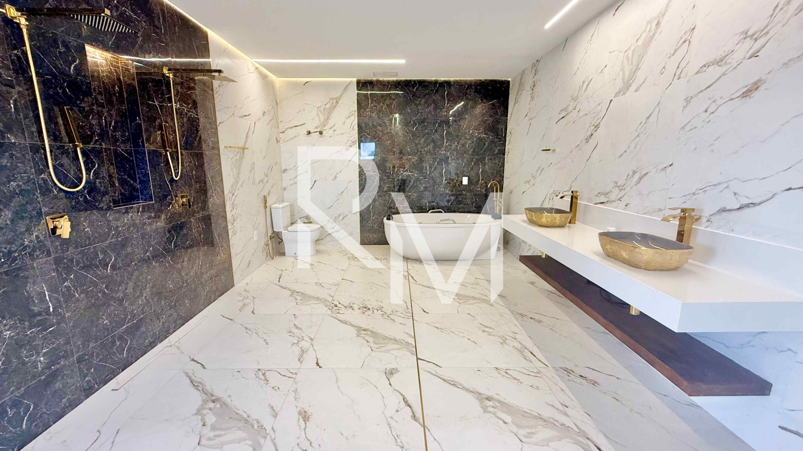 No terceiro pavimento, encontram-se mais duas suítes, incluindo a suíte master com aproximadamente 115m², composta por closets independentes, amplo salão de banho com hidromassagem, ducha dupla e acabamentos sofisticados. O pavimento conta ainda com varanda preparada para instalação de ofurô.
