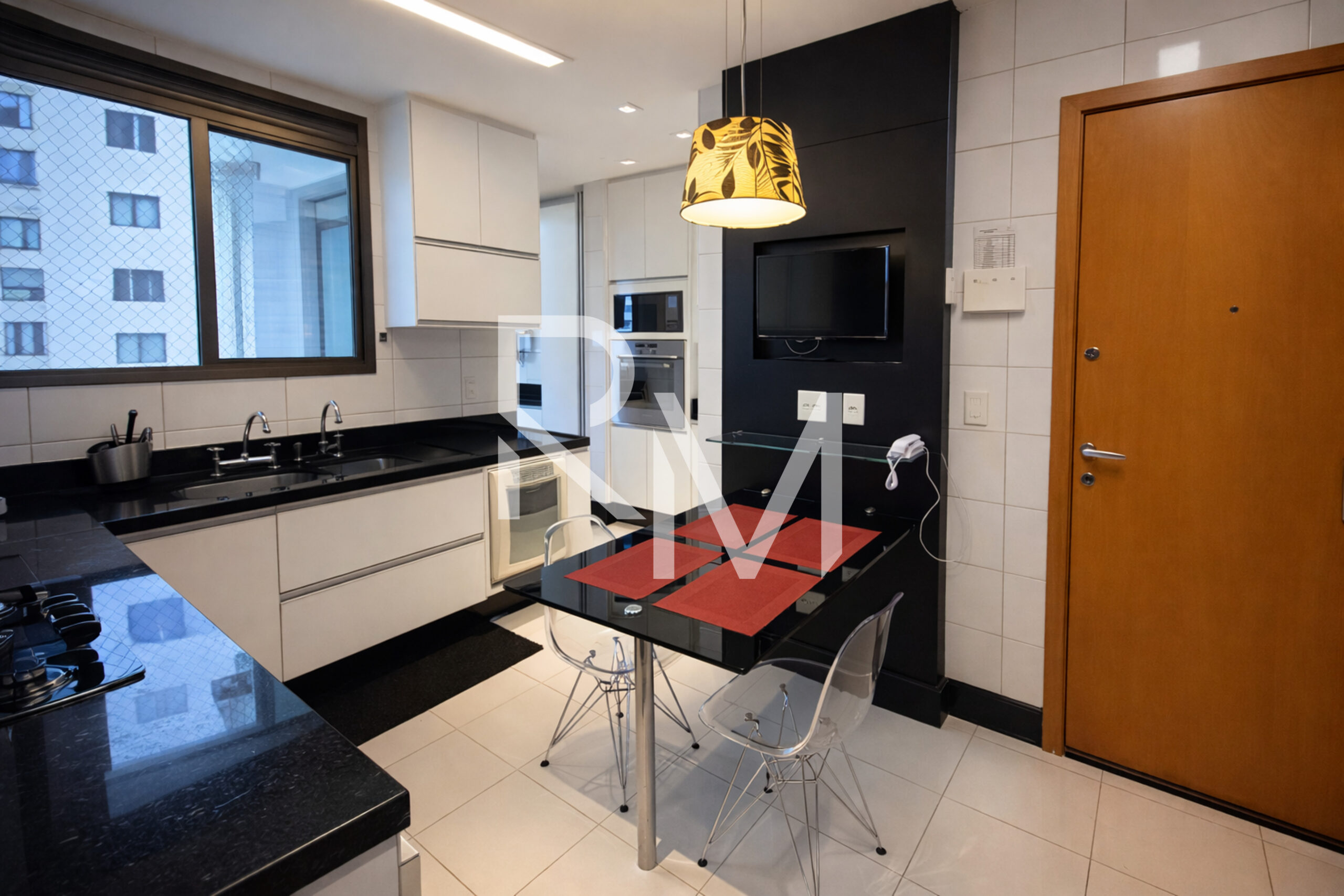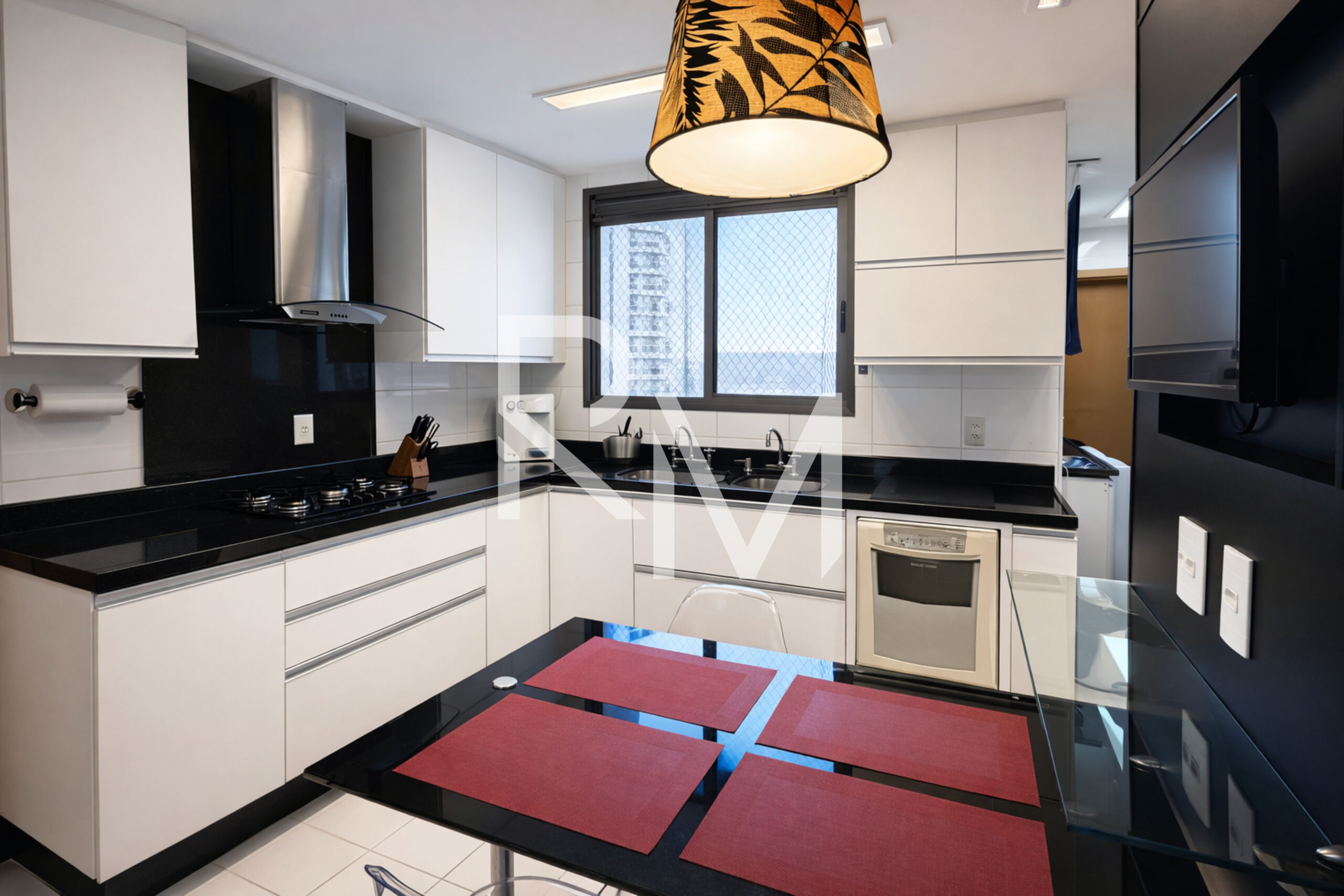 A copa-cozinha é completa, repleta de armários planejados e totalmente equipada com eletrodomésticos. A área de serviço dispõe de máquina de lavar e secar, além de dependência completa, garantindo praticidade no dia a dia.