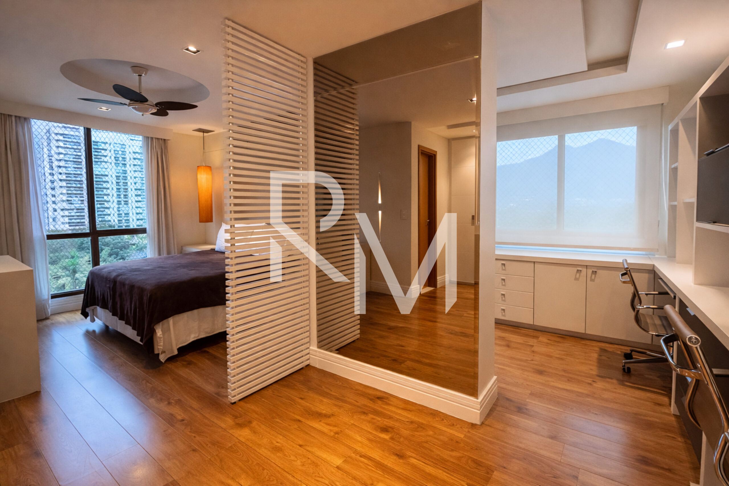 Na área íntima, as três suítes apresentam um design atemporal, com destaque para a suíte master, que conta com closet generoso, banheiro duplo, sendo um com banheira de hidromassagem e escritório integrado, criando um verdadeiro refúgio de conforto e funcionalidade.